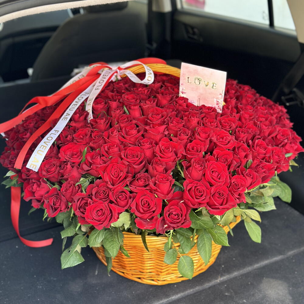 201 красная роза в корзине