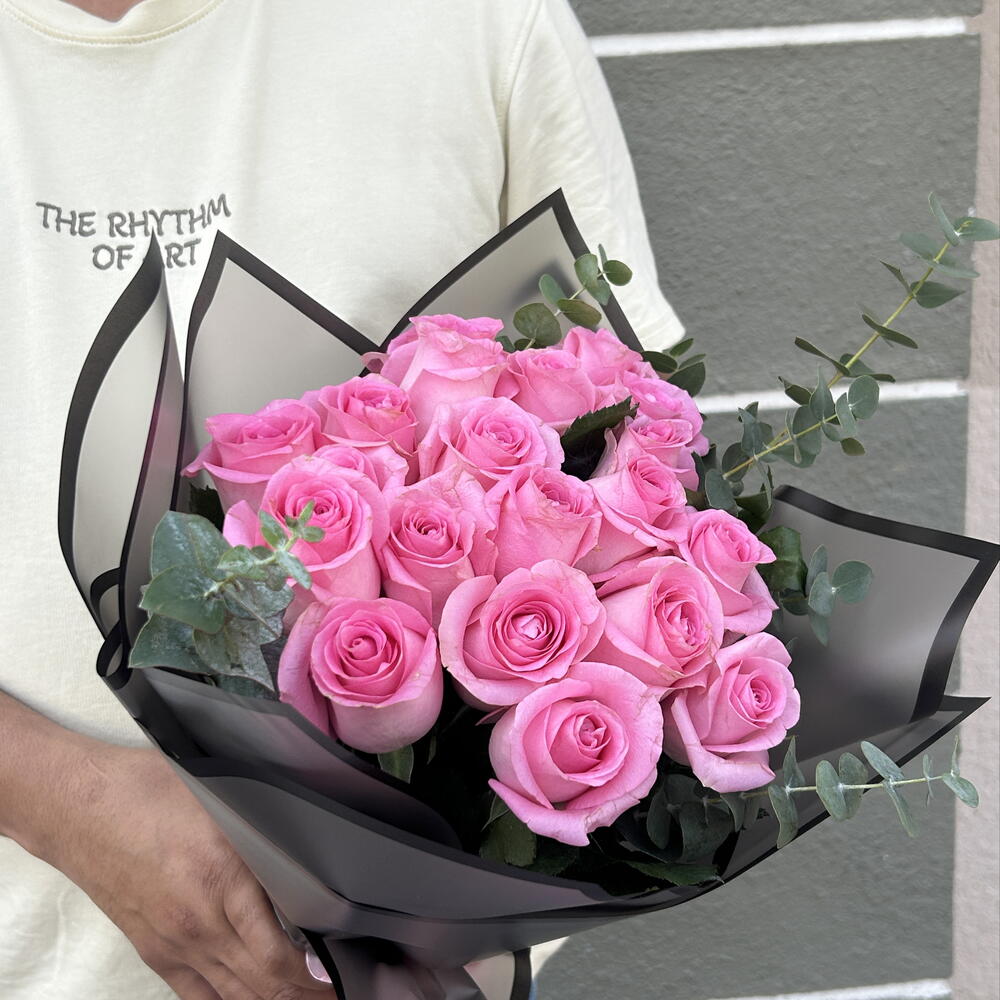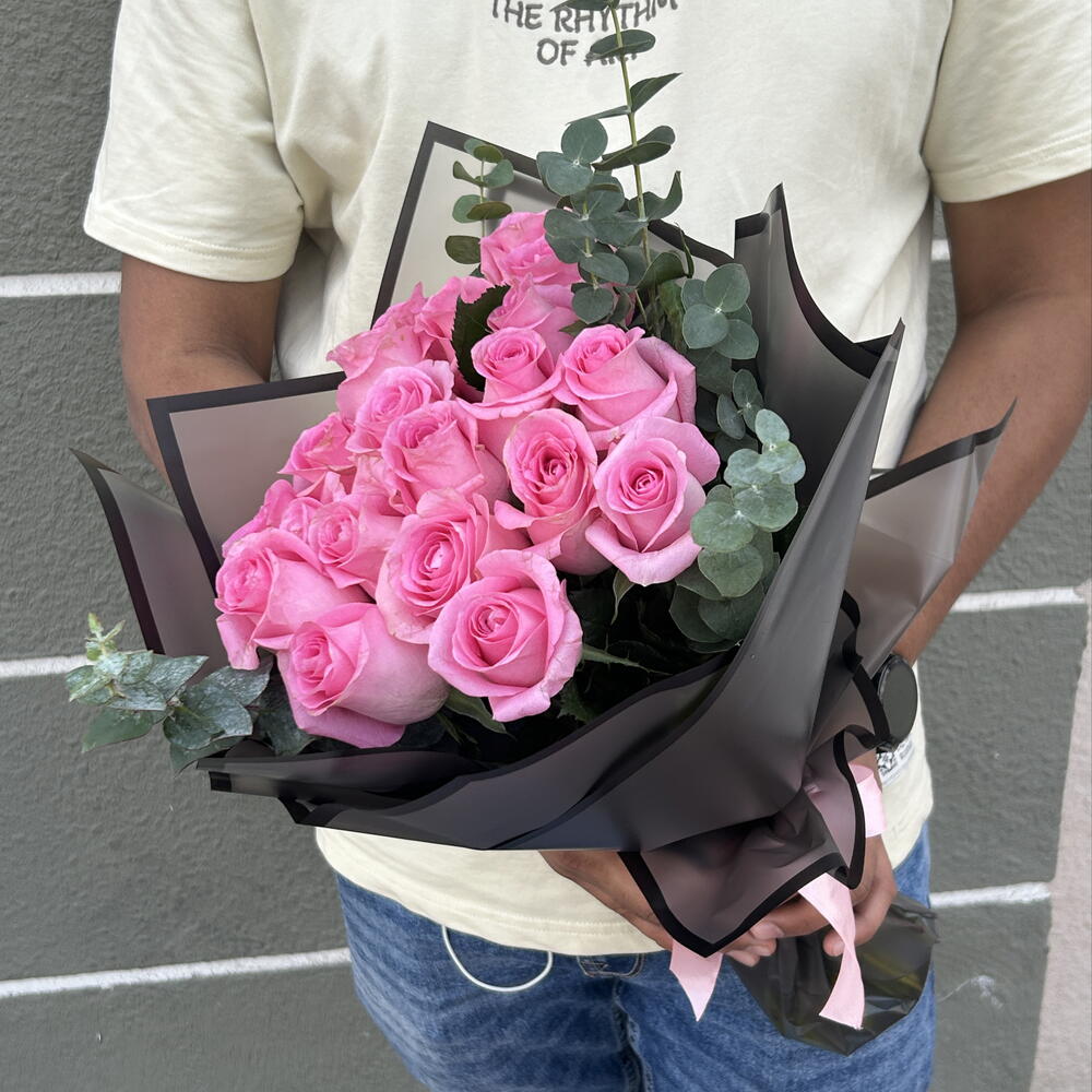 Eucalyptus - 3 шт. Pink rose 50 cm - 21 шт. черная упаковка - 4 шт.