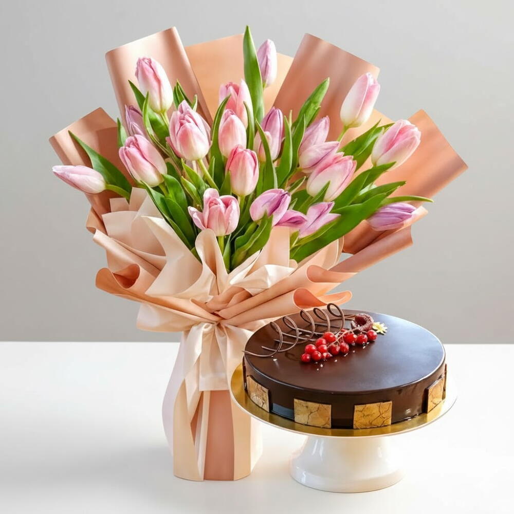 Отпразднуйте любовь и нежность с этим роскошным подарочным набором, включающим 21 свежий розовый тюльпан и килограммовый шоколадный торт — идеальное сочетание элегантности и изысканности. Тюльпаны, символизирующие любовь и изящество, красиво упакованы вручную в высококачественную бумагу и украшены атласной лентой. В сочетании с нежным, роскошным шоколадным тортом этот набор идеально подходит для дней рождения, годовщин, романтических сюрпризов или душевных праздников. Это больше, чем просто подарок — это мгновение радости, красоты и вкуса, доставленное свежим и готовым к наслаждению. ✨ Подробности: ✓ 21 свежий розовый тюльпан в элегантной упаковке ✓ 1 кг шоколадного торта премиум-класса (свежеиспеченного) ✓ Символизирует любовь, восхищение и праздник ✓ Идеально подходит для романтических подарков на дни рождения, годовщины и другие события ✓ Доставка в тот же день доступна по всему Дубайскому торговому центру JVC «Празднуйте со вкусом и нежностью — закажите комбо-торт «Тюльпаны» уже сегодня!» «Подарите красоту и роскошь в одном месте — этот элегантный цветочный набор прямо сейчас!» «Сделайте их день незабываемым — отправьте 21 тюльпан вместе с вкусным тортом уже сегодня!»