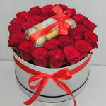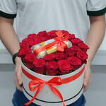 Red rose - 21 шт. Box - 1 шт. Ferrero rocher - 16 шт.