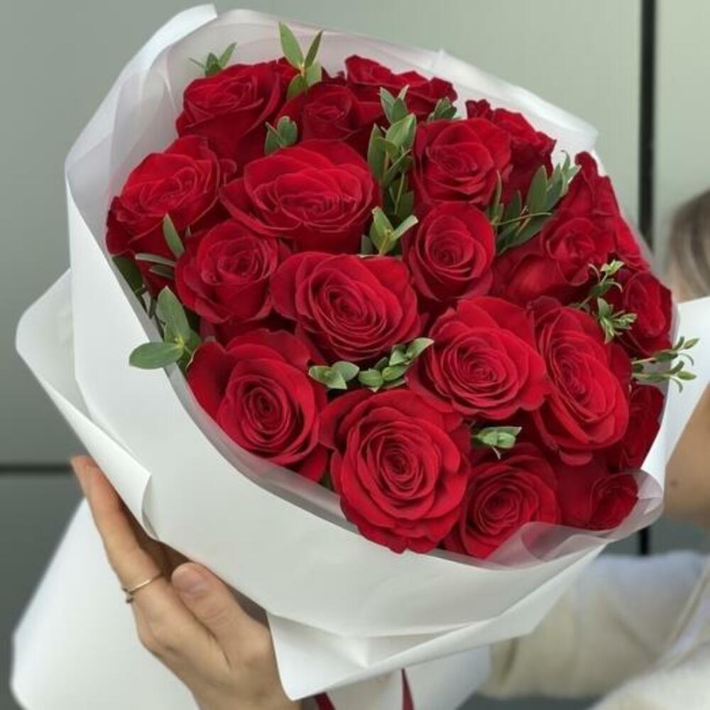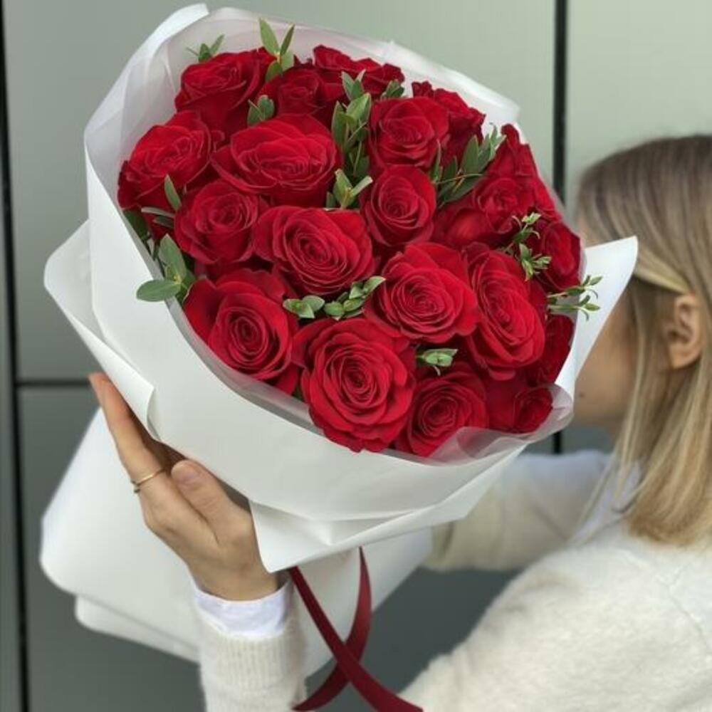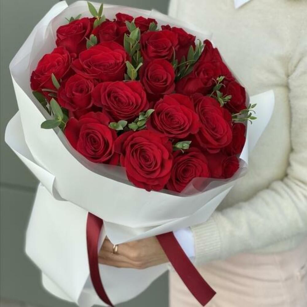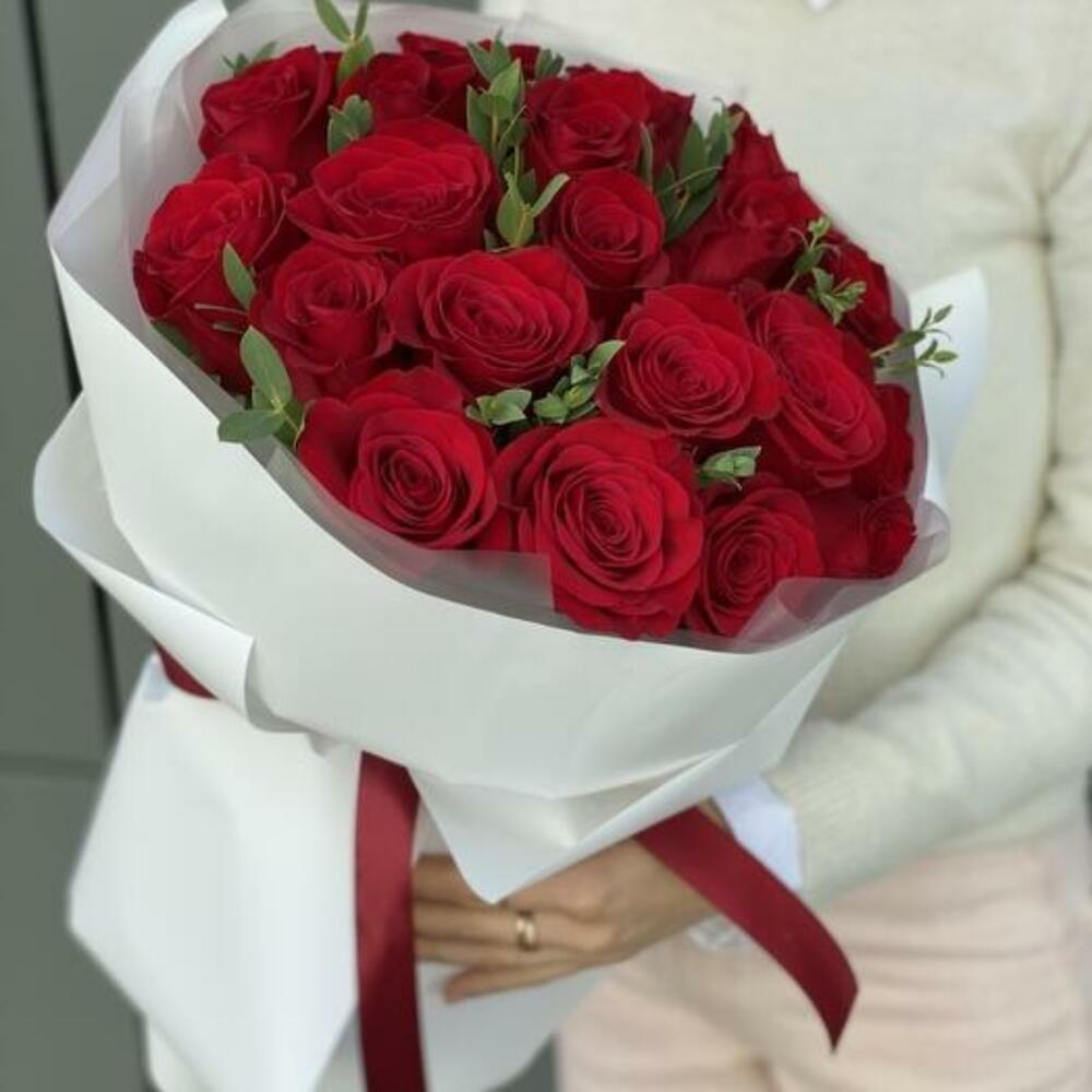 Ribbon - 1 шт. Eucalyptus - 3 шт. rose - 20 шт. packaging - 20 шт.