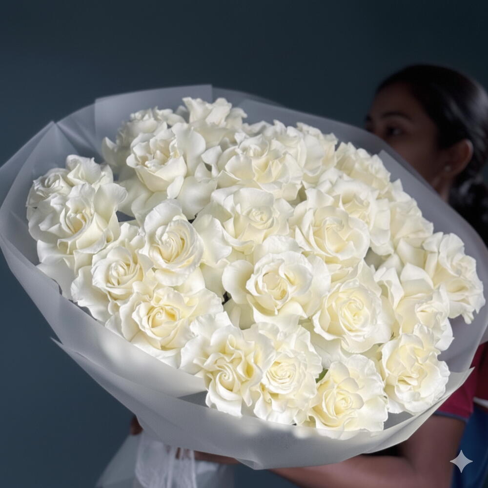Букет из 21 белой распустившейся розы - Эквадор