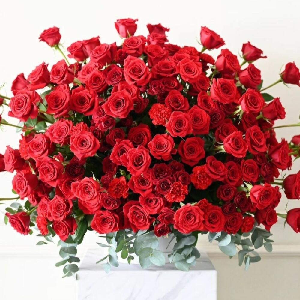 Эта захватывающая дух композиция в стиле Red Rose Basket / Roses in a Box — настоящее заявление о роскоши: она переполнена свежими премиальными красными розами в великолепном, полном садовом дизайне. В ней используются классические темно-красные розы (безусловно фаворит среди букетов из красных роз), композицию оттеняют пышные красные гвоздики и завершают пышные эвкалиптовые зелени для насыщенного, элегантного вида, который кажется смелым, но романтичным. Идеально подходит для цветов, связанных с любовью и романтикой — это один из лучших вариантов для юбилеев, предложений, Дня святого Валентина и незабываемых моментов «я тебя люблю». Также это невероятный сюрприз в качестве цветов к дню рождения и премиального подарка, когда вы хотите произвести максимальный эффект «вау». Созданный как свежий букет из цветов премиального качества, этот премиальный букет является трендовым и по‑настоящему уникальным — без труда входит в число лучших букетов в Дубае.