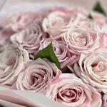 25 светло-розовых роз в розовом цвете