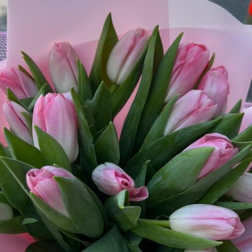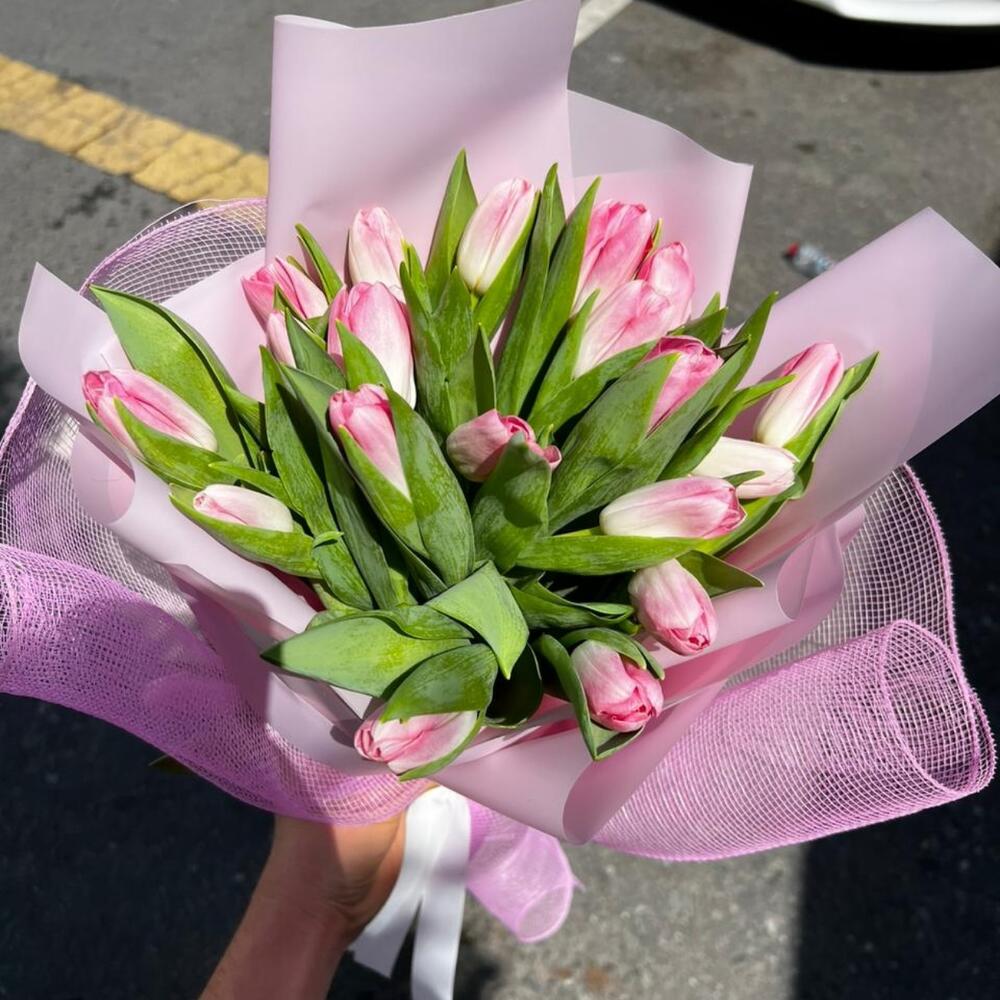 pink tulips - 25 шт. wrapping paper - 1 шт.