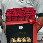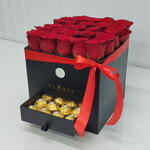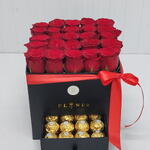 25 красных роз и 16 конфет Ferrero Rocher
