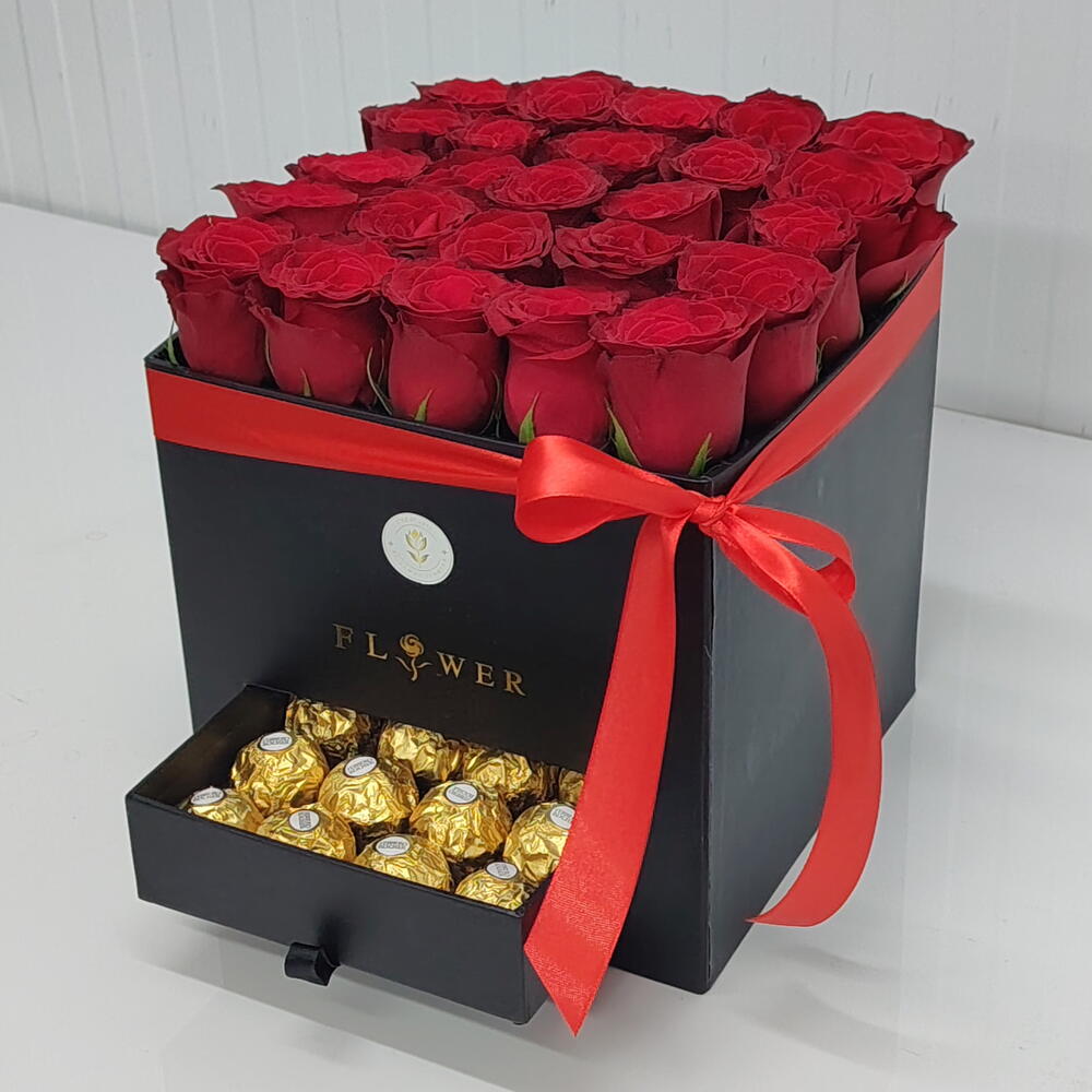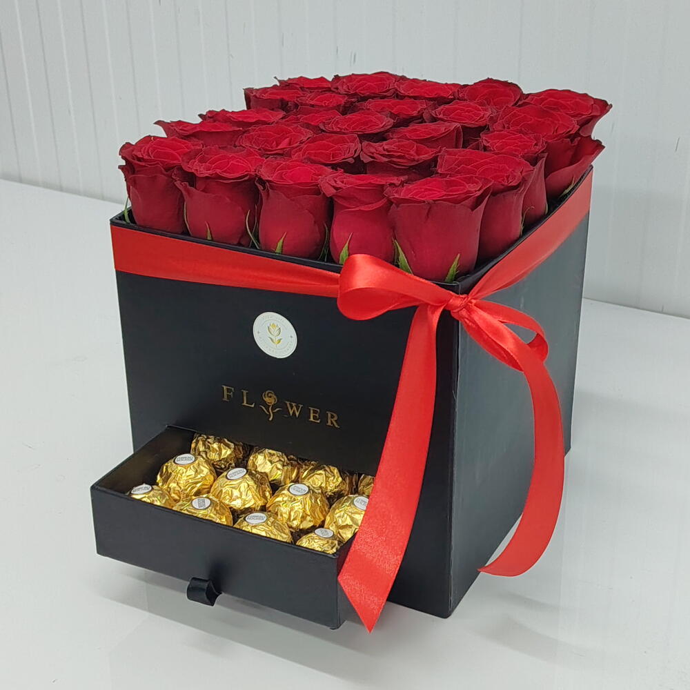 25 красных роз и 16 конфет Ferrero Rocher
