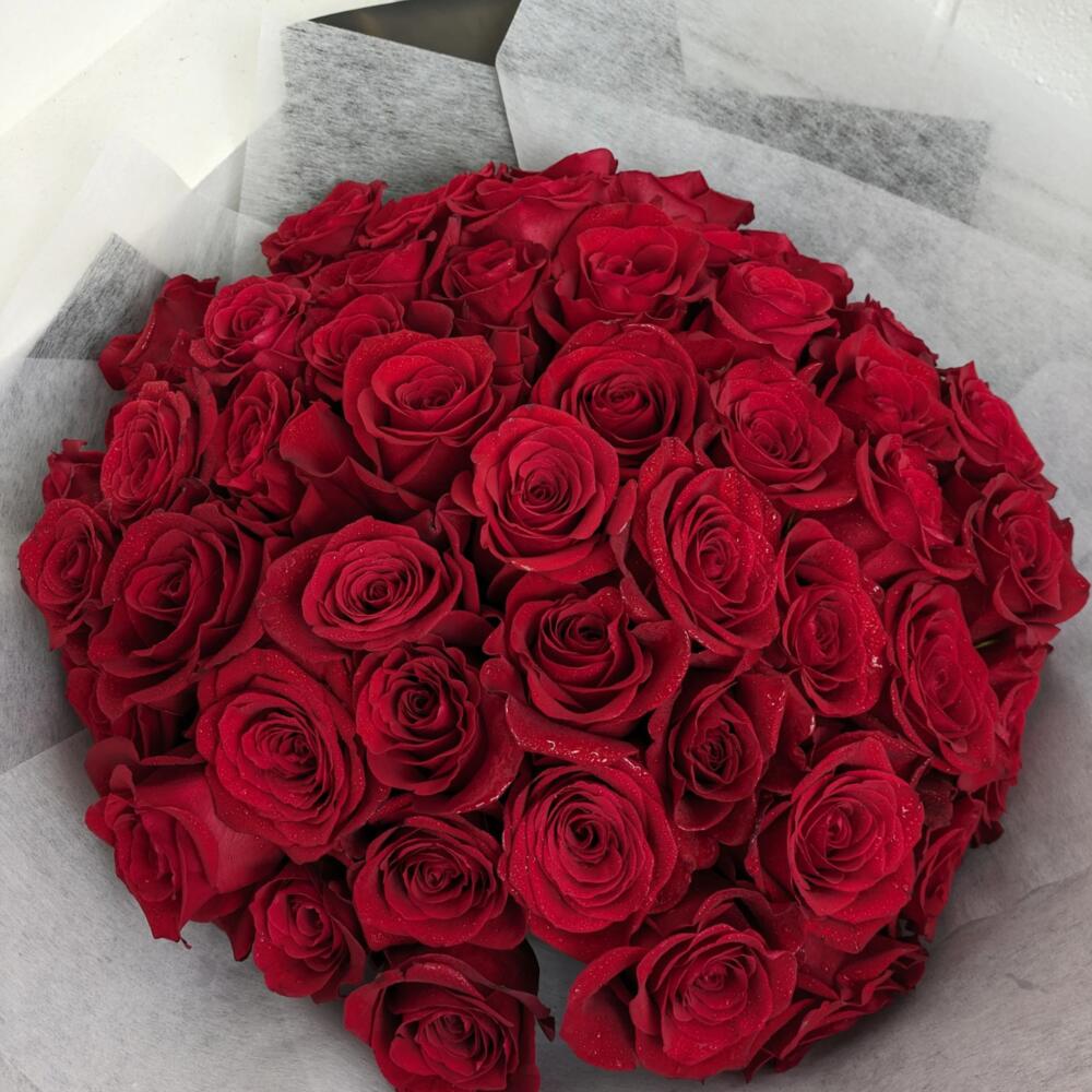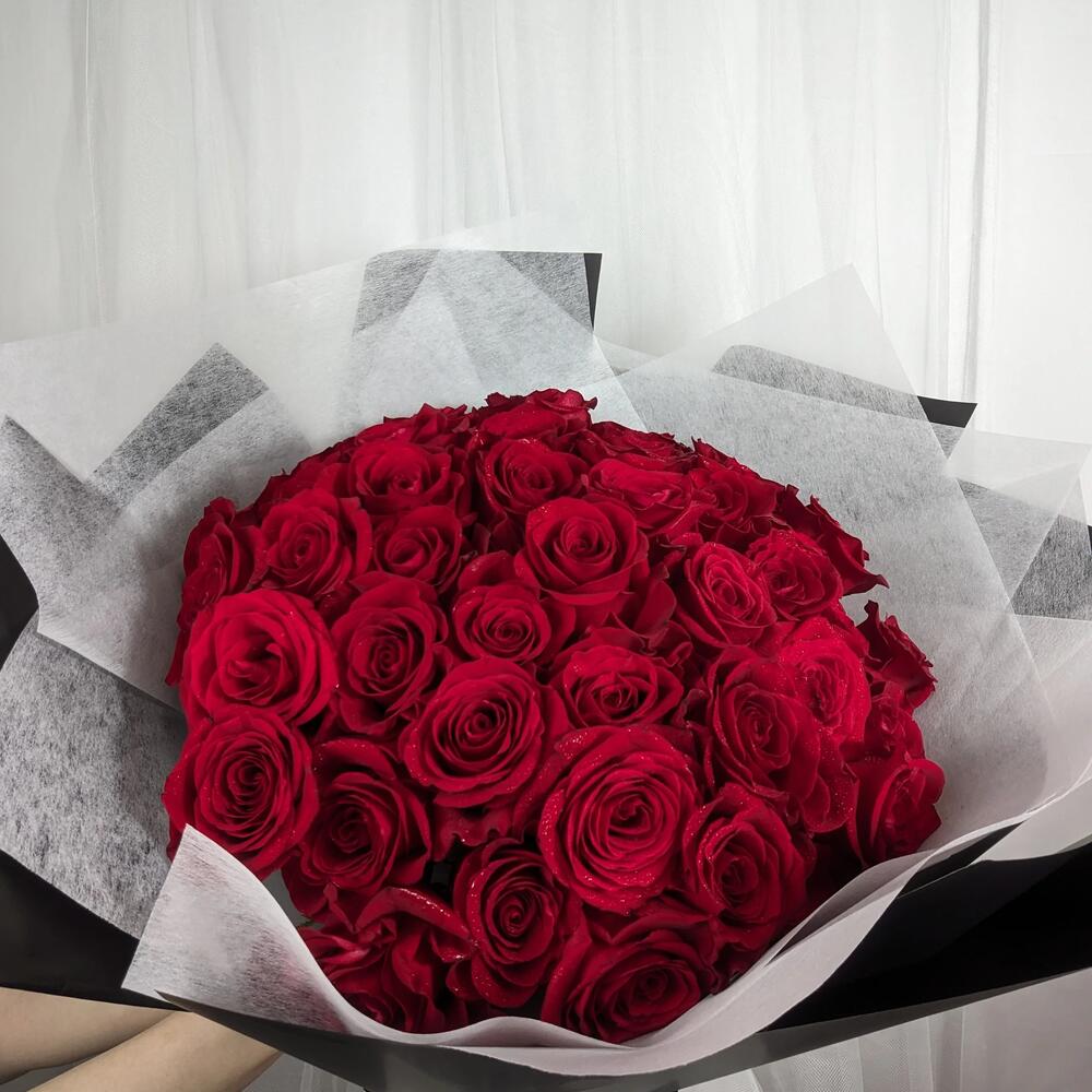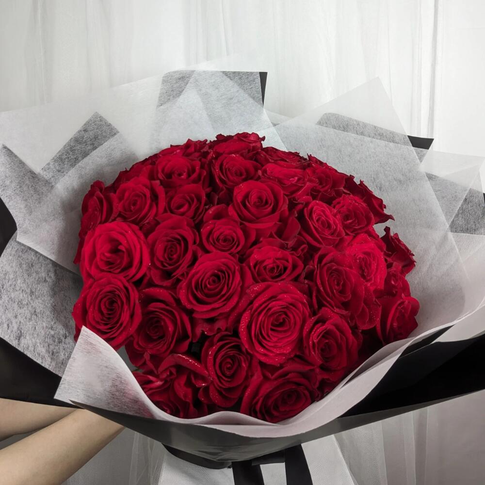 Потрясающий букет из 25 свежих красных роз, элегантно оформленный, символизирующий любовь, романтику и страсть. Идеален для годовщин, Дня святого Валентина или особых сюрпризов для неё или для него.