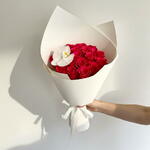 Уникальный и элегантный букет из 25 красных роз в сочетании с одной орхидеей, символизирующий любовь, красоту и утончённость. Идеально подходит для юбилеев, романтических жестов или особых случаев.