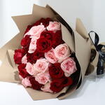 Детали и размер: 30 стеблей премиальных роз Высота 50-60 см в зависимости от сорта. Упаковка: Упаковано в коричневую пластиковую бумагу, перевязанную черной лентой. Гарантия свежести цветов: Мы гарантируем 100% свежие цветы и радость для всех заказов. Если вы не довольны вашим заказом, мы заменим товар в ближайшее время. Инструкции по уходу: Снимите упаковку и поставьте в свежую воду. Обрезайте стебли с нижней части под углом 45 градусов каждые 3 дня и меняйте воду ежедневно.