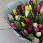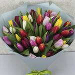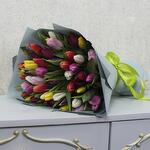 Ribbon - 1 шт. wrapping paper - 3 шт. mixed tulips - 51 шт.