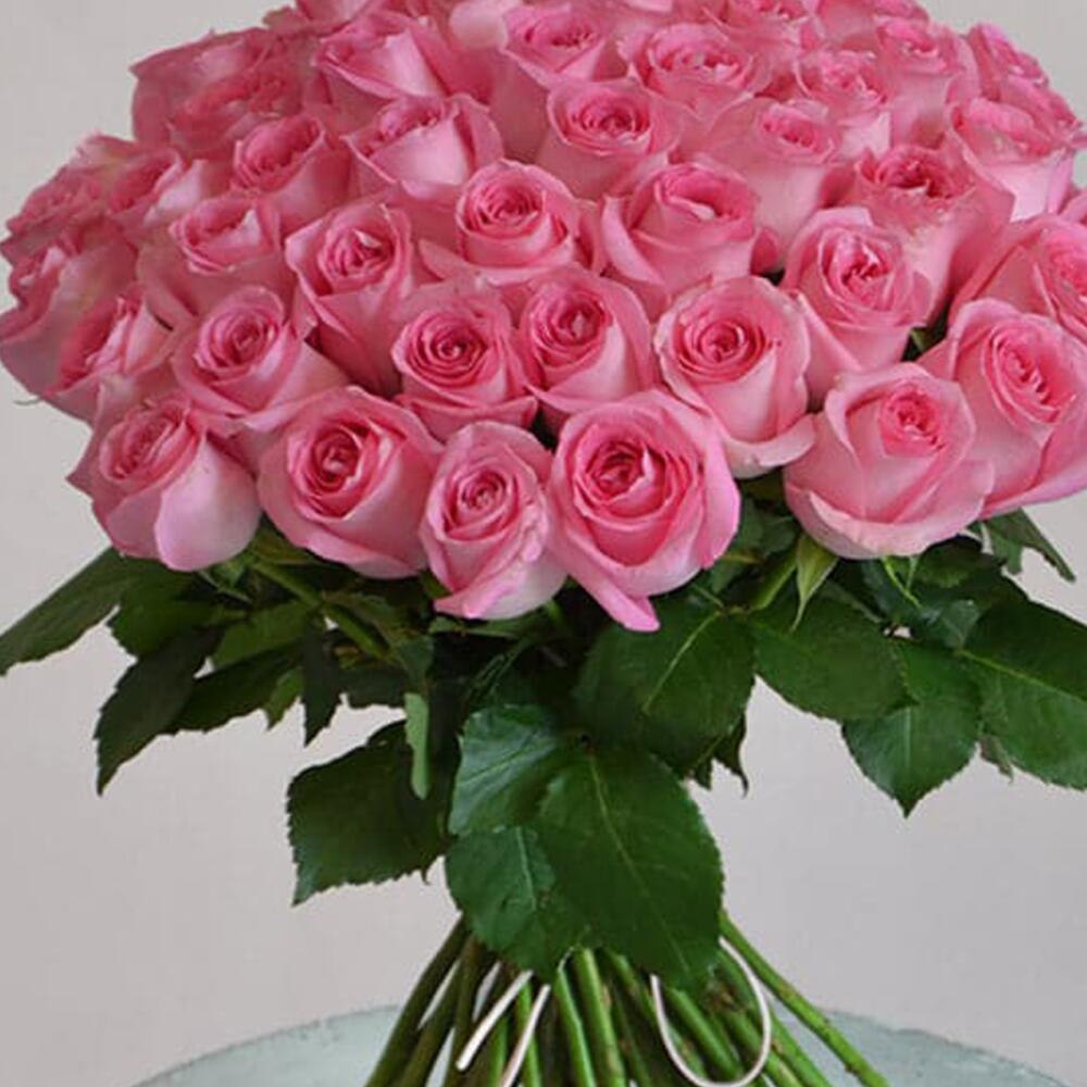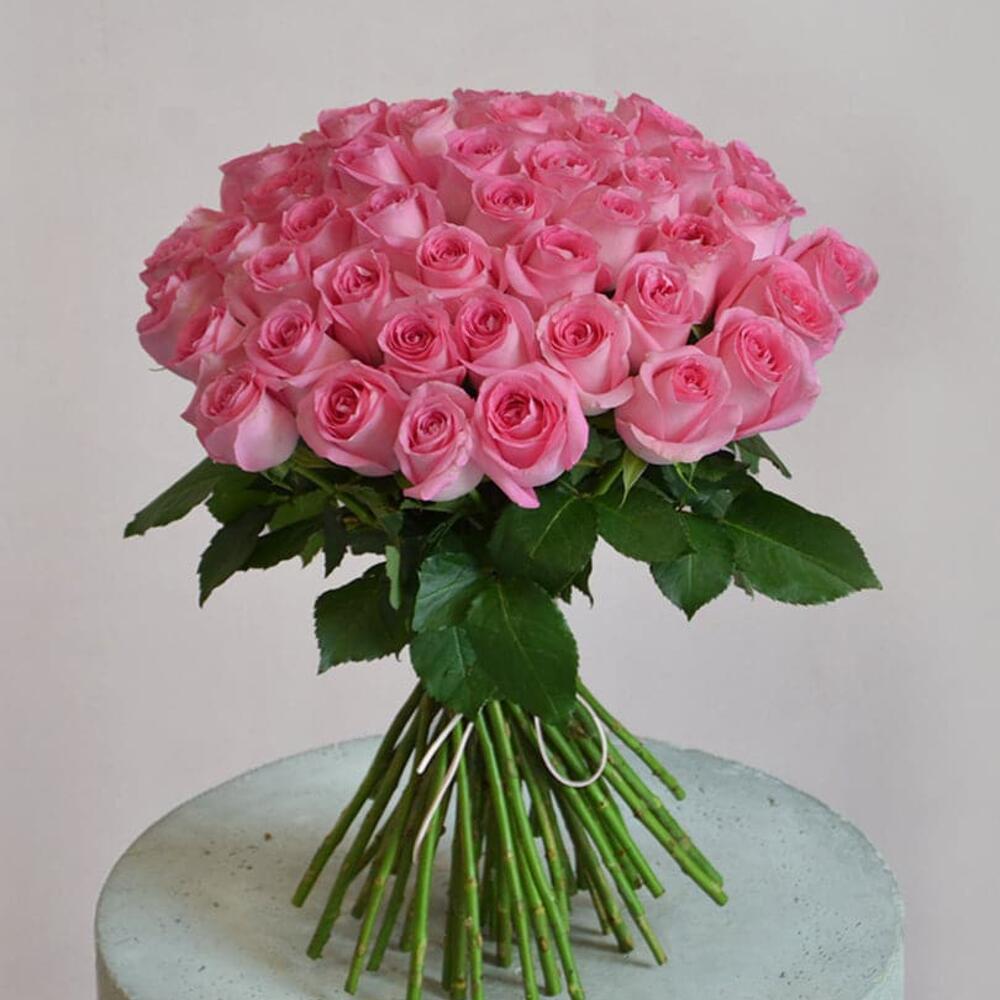 35 розовых роз, перевязанные лентой