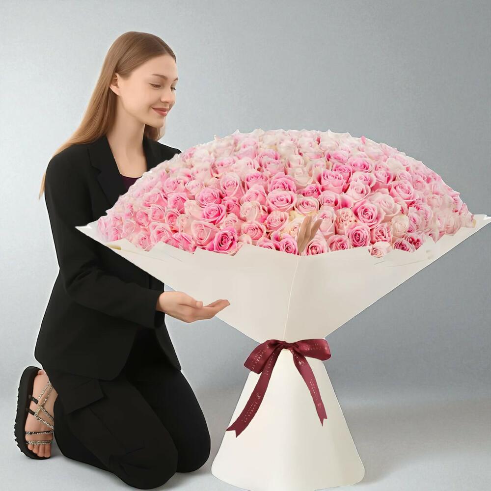 Триста шестьдесят пять роз с длинными стеблями розового цвета, чтобы символизировать истинную любовь каждый день года. Розы — высший символ любви.