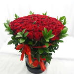 Откройте для себя высшее выражение любви с нашей букетом «Цветы в коробке» – захватывающей композиции из 101 роскошной длинностебельной красной розы. Каждая роза, тщательно отобранная благодаря своему высочайшему качеству и впечатляющей длине 40 см, – это неоспоримое выражение нежности и восхищения. Эта потрясающая цветочная композиция в шикарной коробке станет незабываемым подарком для ваших близких по любому поводу.