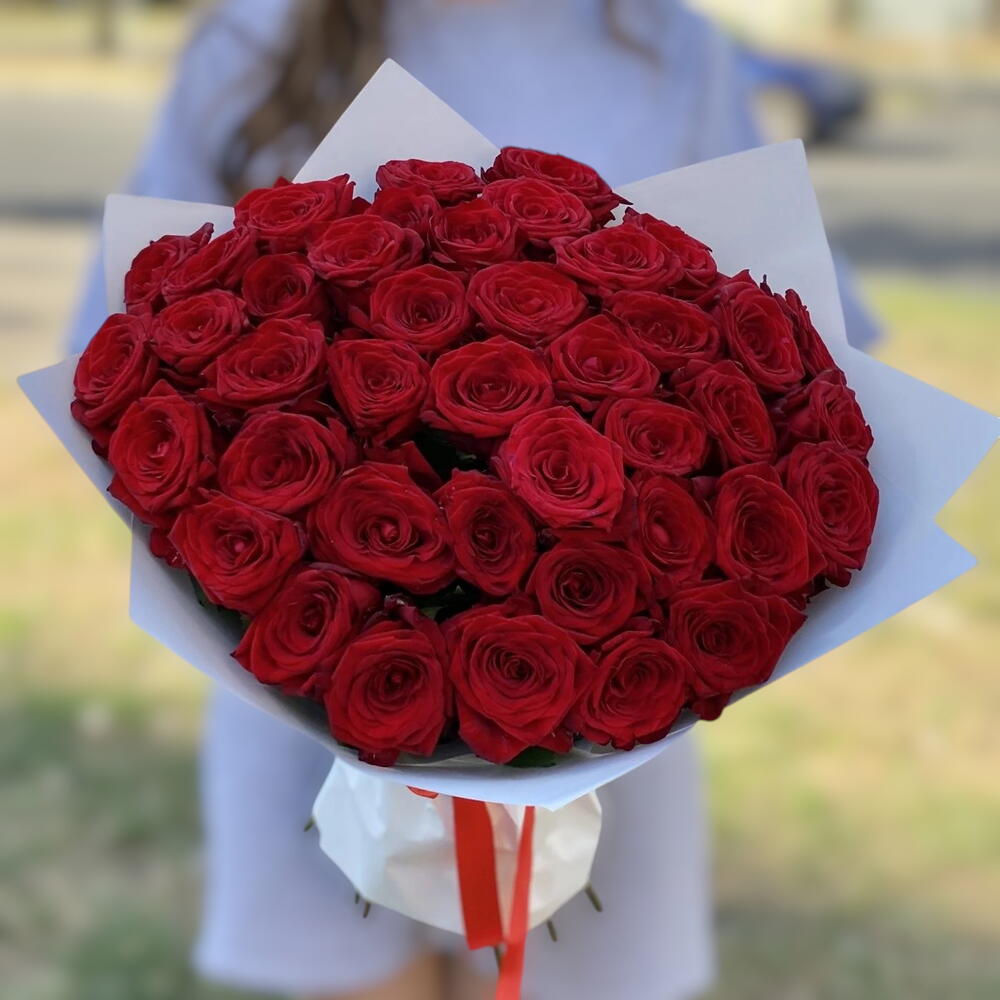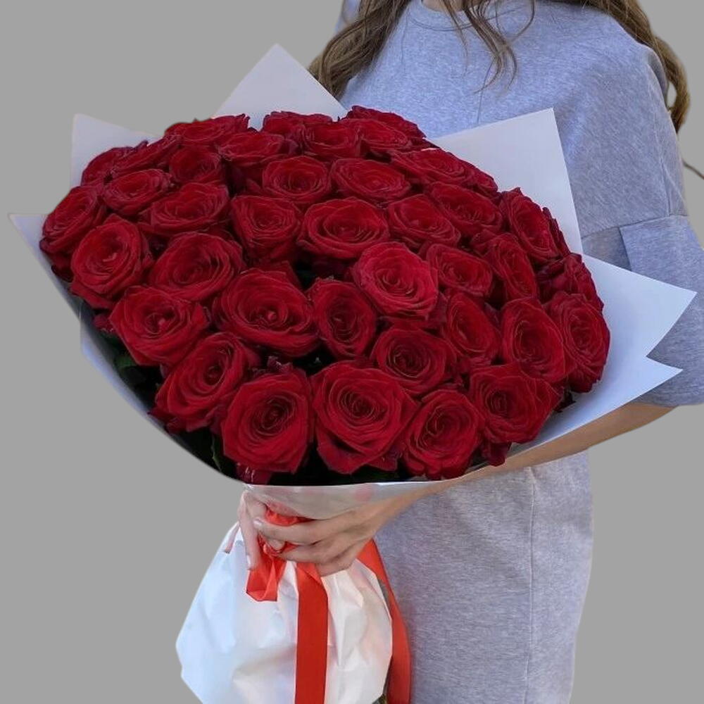 Роскошный букет из 41 красной розы премиум-класса в подарок девушке на годовщину