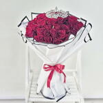 Представляем наш букет из 51 красной розы – захватывающую дух композицию, созданную, чтобы произвести впечатление. Пятьдесят одна пышная, бархатистая красная роза искусно составлена, символизируя глубокую любовь и страсть. Этот букет, заключенный в элегантную белую упаковку, излучает изысканность и чистоту, создавая поразительный контраст, который подчеркивает яркие красные оттенки роз. Завершающим штрихом букета является королевская корона, символизирующая королевскую власть и величие события. Эта королевская деталь делает его идеальным для чествования кого-то действительно особенного, будь то романтический жест, важное событие или дань уважения королеве в вашей жизни. Выразите свою любовь, элегантность и восхищение этим величественным букетом. Достойный королевской особы, созданный для вас. Идеально подходит для: годовщин, дней рождения, Дня святого Валентина или любого другого случая, заслуживающего королевского прикосновения.