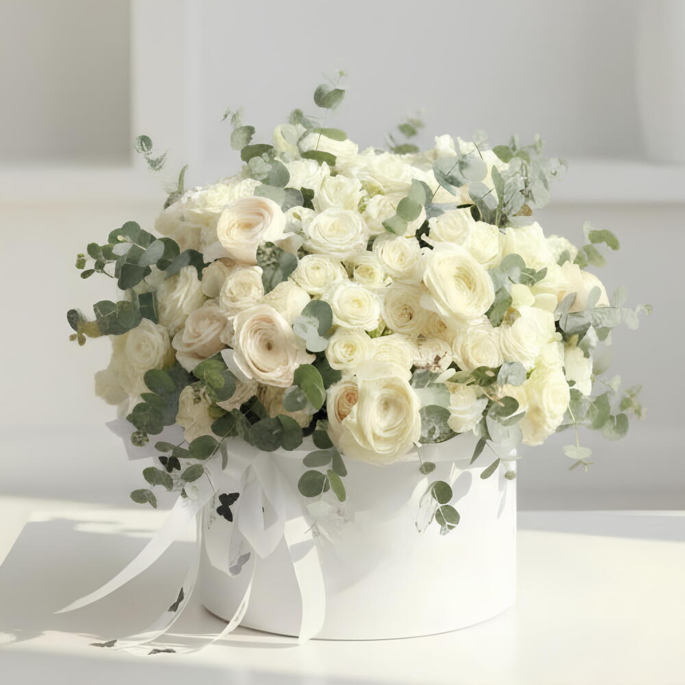 Шедевр чистоты, изящества и вневременной утонченности, эта потрясающая композиция состоит из 41 белой кустовой розы, представленной в элегантной белой коробке. Каждый нежный цветок отобран вручную и тщательно составлен, чтобы излучать изысканность и искренние эмоции, что делает ее идеальным подарком на годовщину, день рождения, свадьбу или элегантное торжество. Полностью белый дизайн воплощает безмятежность и класс — идеальное выражение элегантности в ее чистейшей форме. Отпразднуйте с элегантностью и изяществом — закажите сегодня 41 белую кустовую розу в белой коробке с доставкой в тот же день в Дубай!