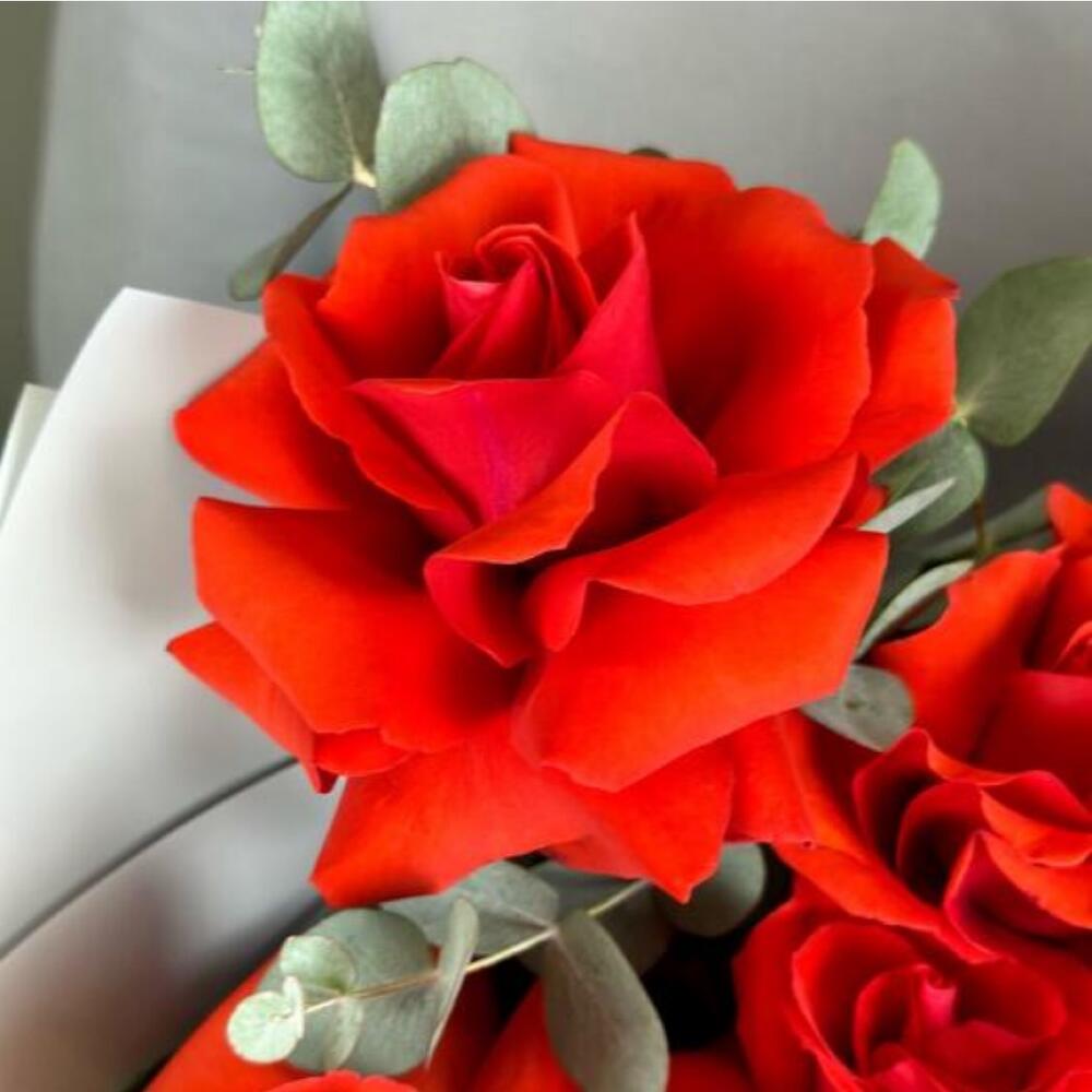 премиальная красная роза - 5 шт. белая упаковочная бумага - 4 шт.