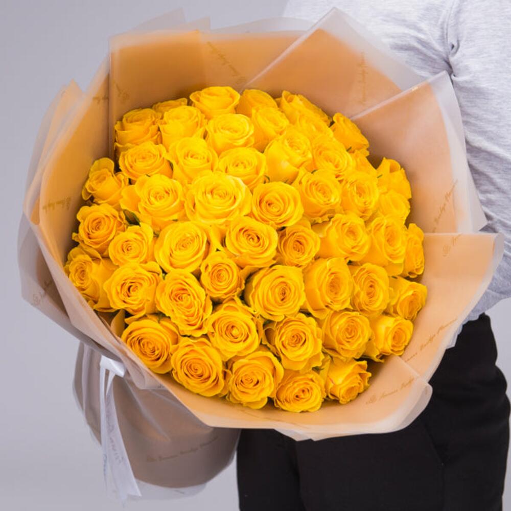 Букет из 50 жёлтых роз премиум-класса