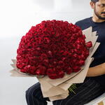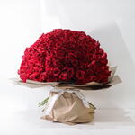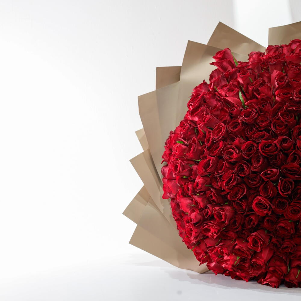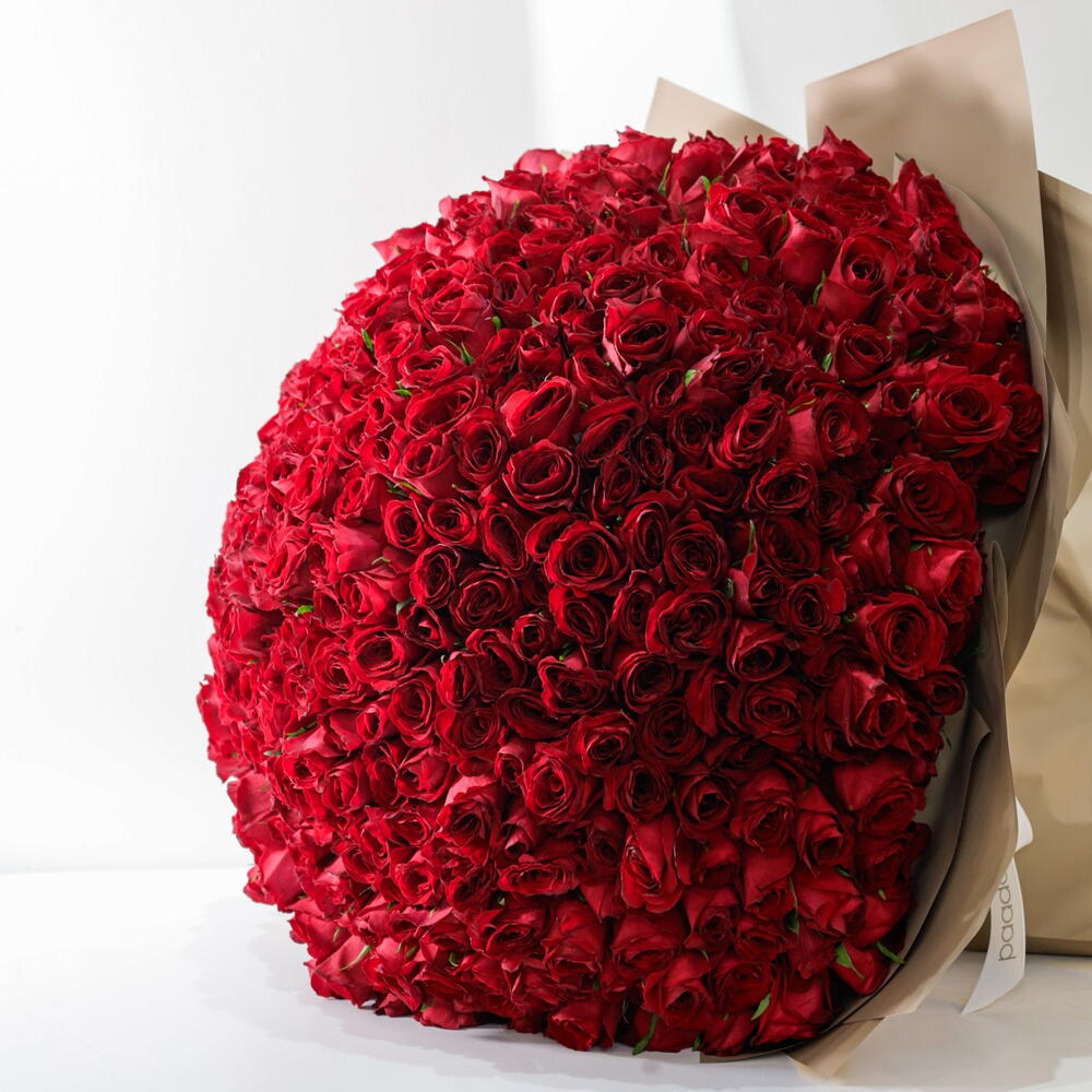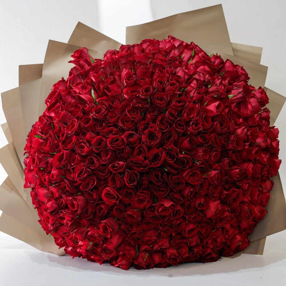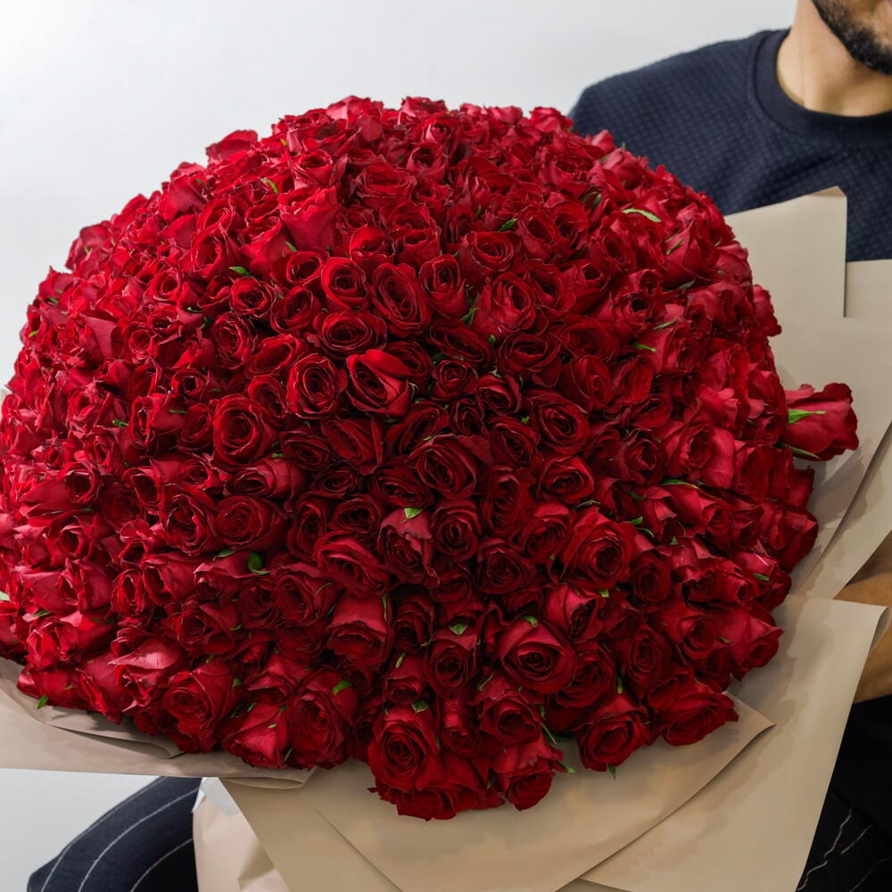 Погрузитесь в квинтэссенцию романтических жестов с этим потрясающим моно-букетом. Состоящий из роскошного ансамбля из 501 красной розы с длинными стеблями длиной 60 см, этот букет является истинным выражением привязанности и восхищения. Каждая роза тщательно отбирается за её яркий оттенок и свежесть цветка, чтобы впечатлить вашего любимого человека. Букет изысканно упакован в 24 листа землисто-коричневой обёрточной бумаги, которые красиво контрастируют с пышными красными лепестками, обеспечивая, что розы выделяются. Финальные штрихи — 3 элегантные белые ленты, аккуратно завязанные, чтобы придать букету изящное завершение. Откройте для себя роскошь и страсть, воплощённые в каждой детали этого грандиозного букета.