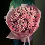 Элегантный и пышный букет из 51 стебля кустовых роз Pink Mansfield Park, красиво оформленный, чтобы создать мягкое, романтичное впечатление — идеально подходит для выражения любви, грации и вневременного очарования. Один стебель кустовой розы может иметь 3 или 4 цветка.