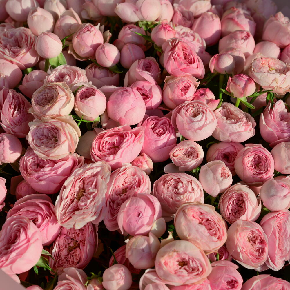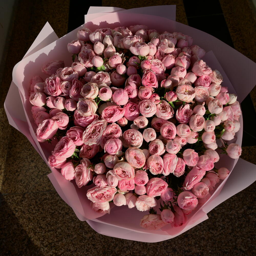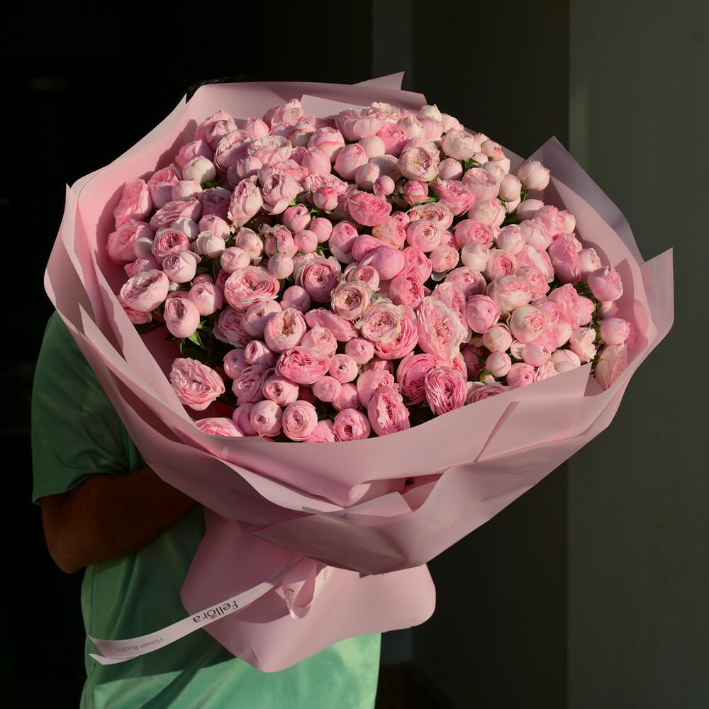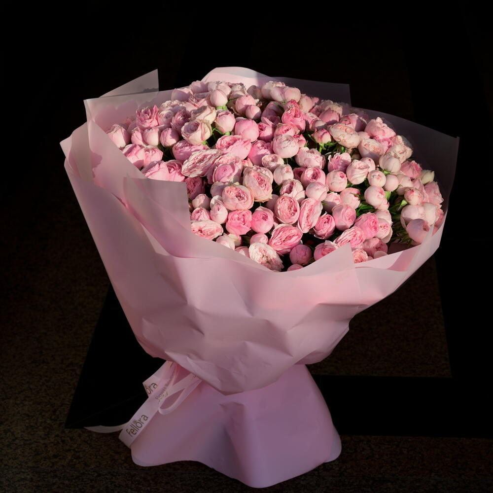 Элегантный и пышный букет из 51 стебля кустовых роз Pink Mansfield Park, красиво оформленный, чтобы создать мягкое, романтичное впечатление — идеально подходит для выражения любви, грации и вневременного очарования. Один стебель кустовой розы может иметь 3 или 4 цветка.