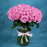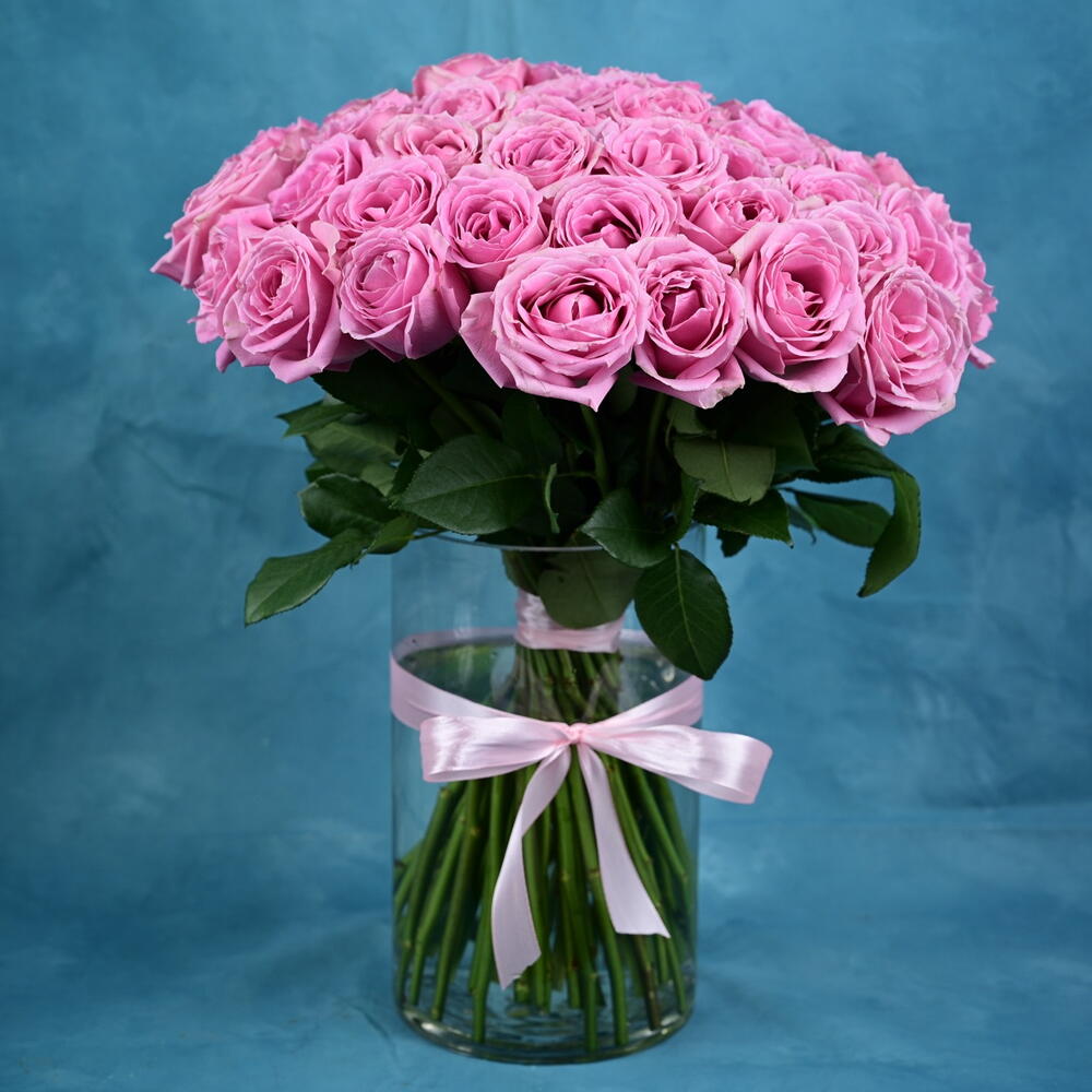 Pink rose - 51 шт. ribbon satin - 1 шт. цилиндрическая ваза - 1 шт.