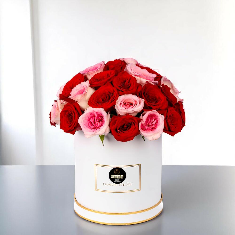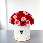 Коробка из 51 премиальных красных и розовых роз