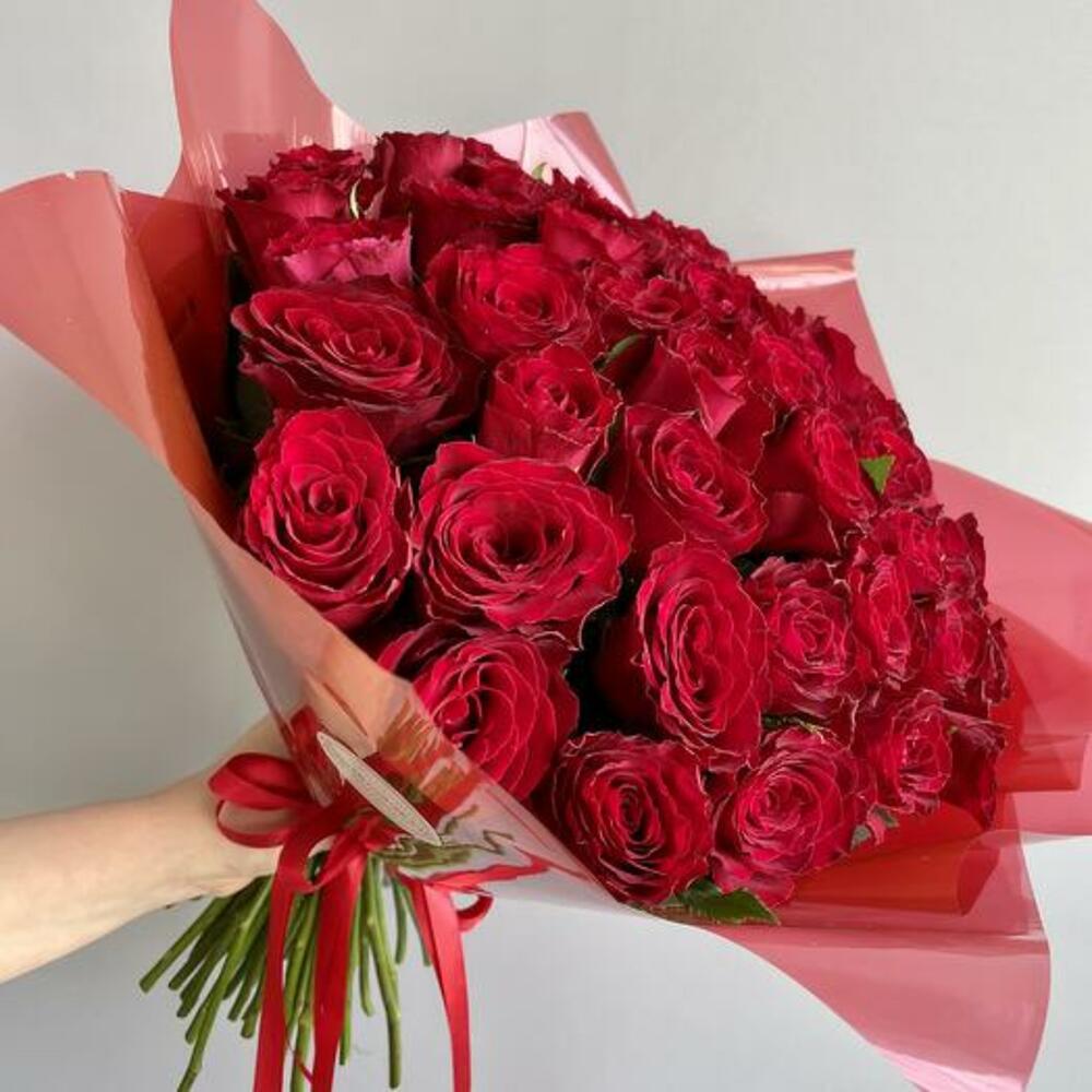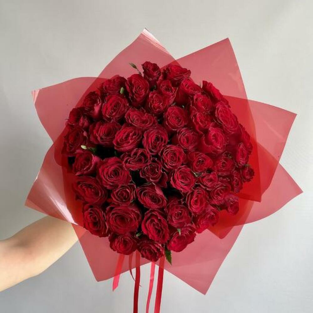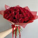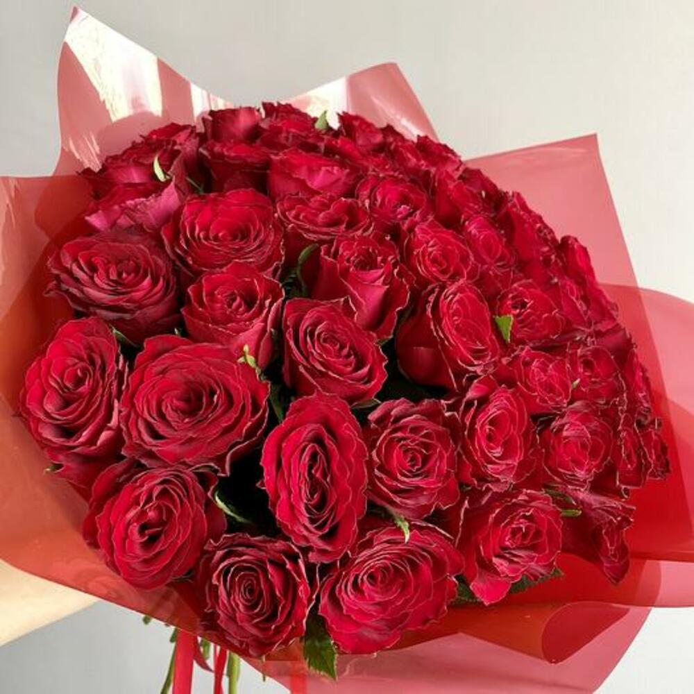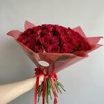 Ярко-красные розы, которые восхитят получателя своей долговечностью и необычайным цветом в яркой упаковке.