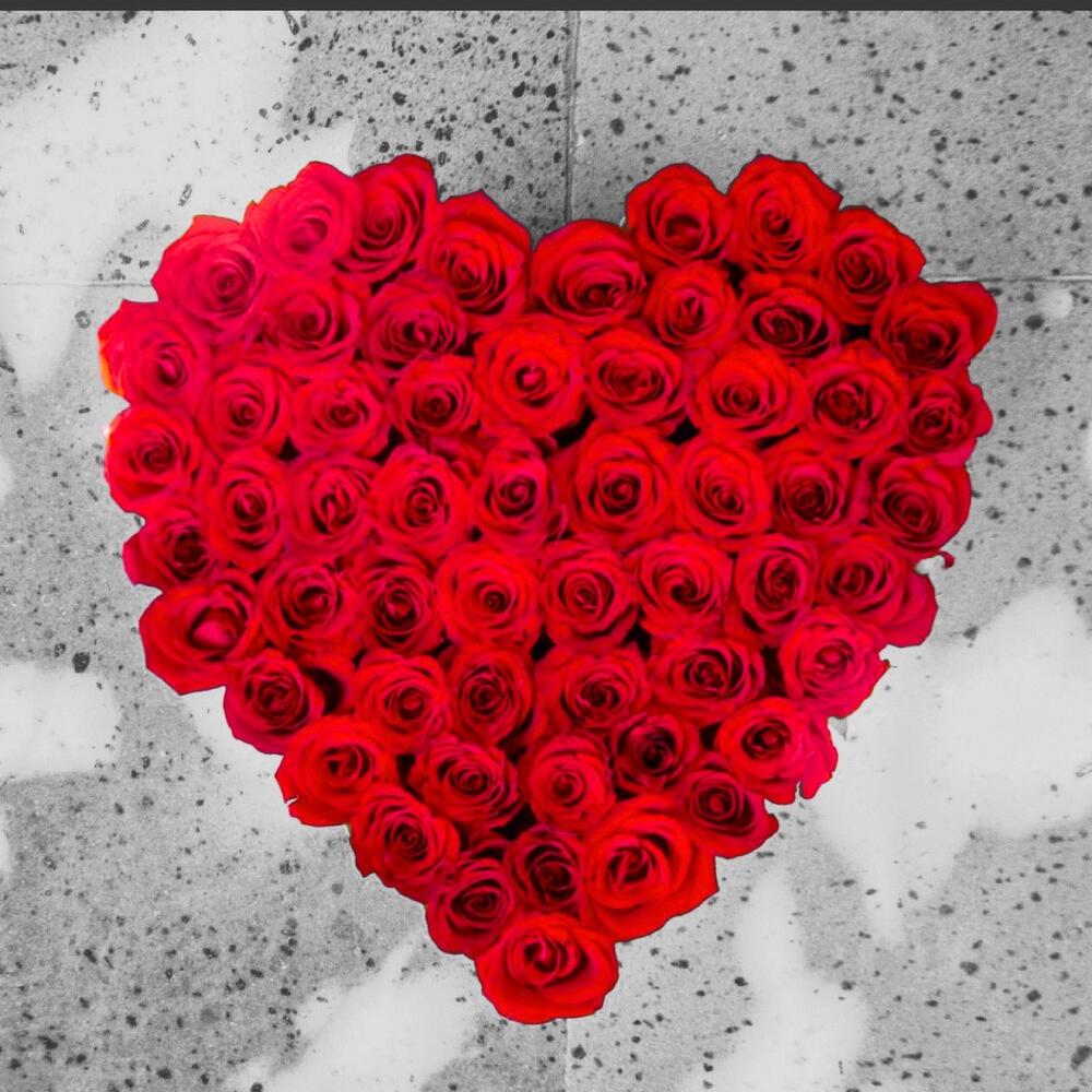Red rose - 51 шт. цветочная коробка в форме сердца - 1 шт.