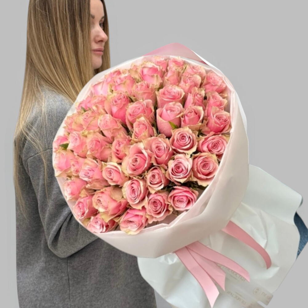 мягкие розовые розы - 51 шт.