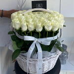 Basket - 1 шт. белые розы из полиэстера - 51 шт.