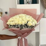 Насладитесь чистотой и элегантностью простоты с нашим изысканным букетом из 51 свежей белой розы в элегантной упаковке.