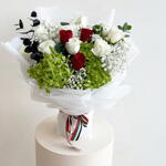 hydrangea green - 2 шт. red roses - 3 шт. white roses - 10 шт.