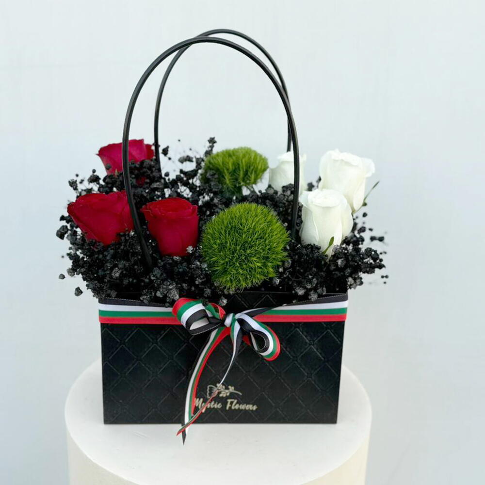 гвоздика зеленая - 2 шт. red roses - 3 шт. white roses - 3 шт.