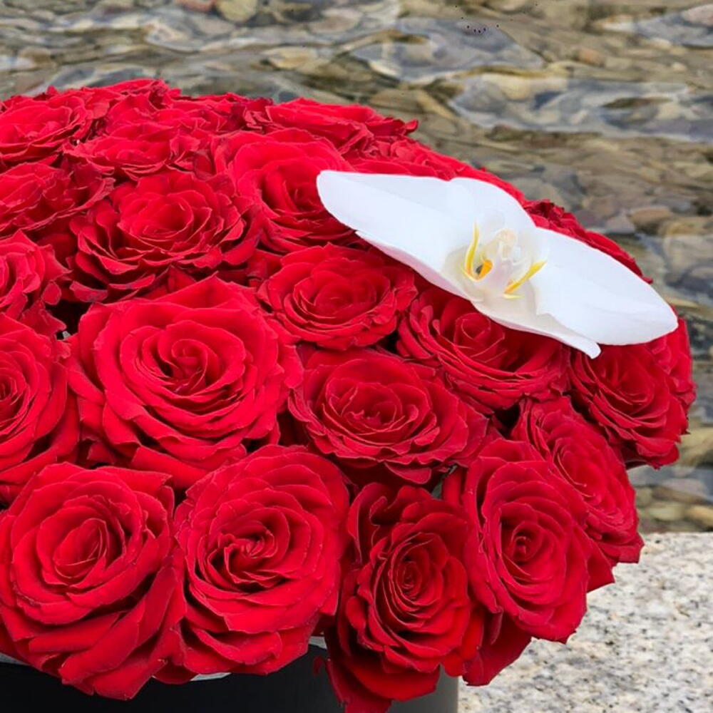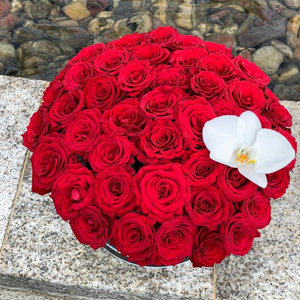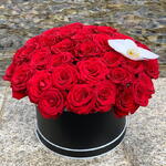 Box - 1 шт. phalaenopsis orchid - 1 шт. premium red rose - 55 шт.