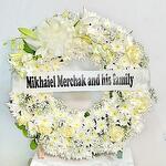 60 дм белого цвета венок с отдельно стоящей подставкой