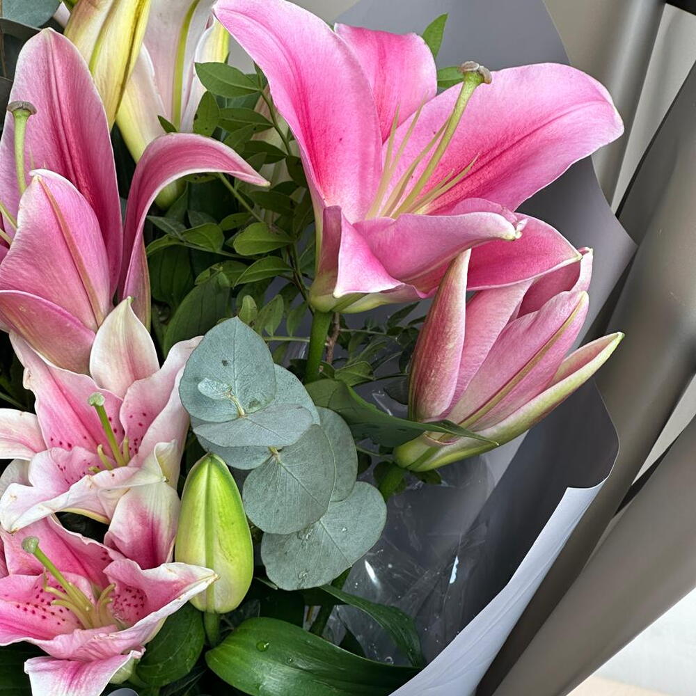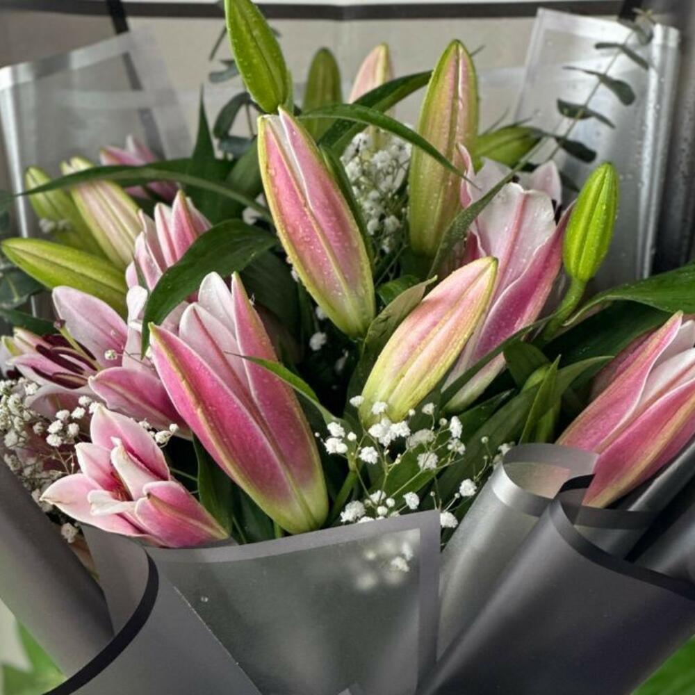 Насладитесь нежной красотой монобукета, изящно составленного из 7 бархатисто-розовых лилий. Каждый цветок символизирует восхищение, привязанность и элегантность, создавая композицию, излучающую романтику и изысканность. Благодаря своему нежному аромату и непреходящему очарованию эти лилии станут идеальным подарком на годовщины, дни рождения, День святого Валентина или просто для того, чтобы сделать чей-то день ярче. Этот тщательно продуманный букет — изящное выражение любви и тепла. ✨ Пусть элегантность расцветает. Закажите монобукет из розовых лилий сегодня с доставкой в тот же день и удивите своих близких непреходящей красотой.