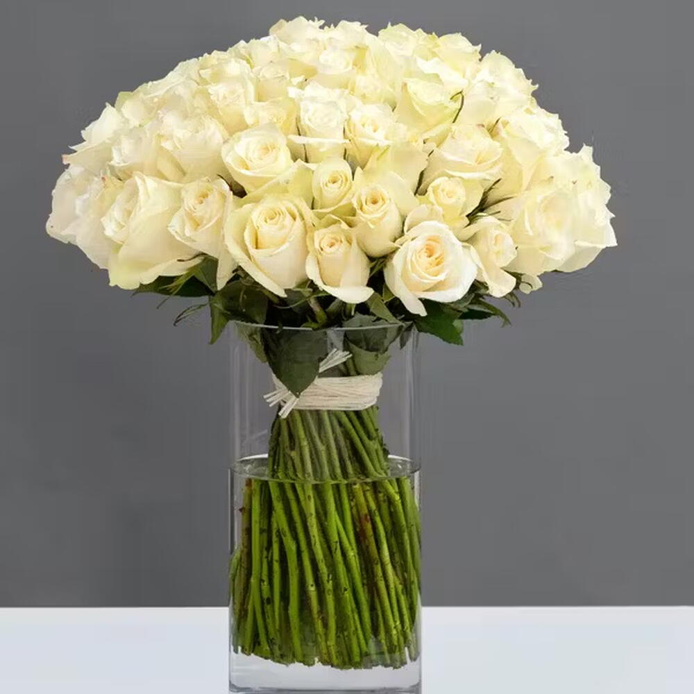 75 белых роз в вазе
