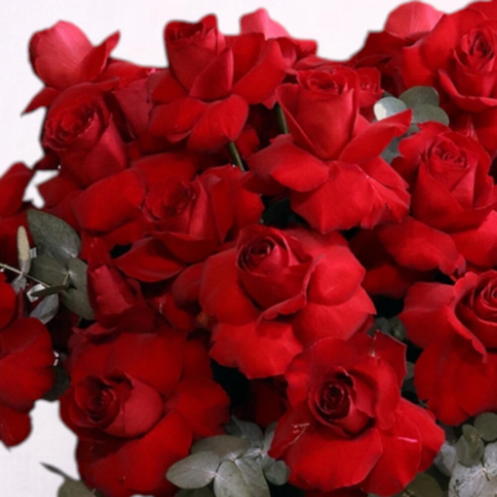 black box - 1 шт. eucalyptus leaves - 7 шт. красные классические розы - 89 шт.
