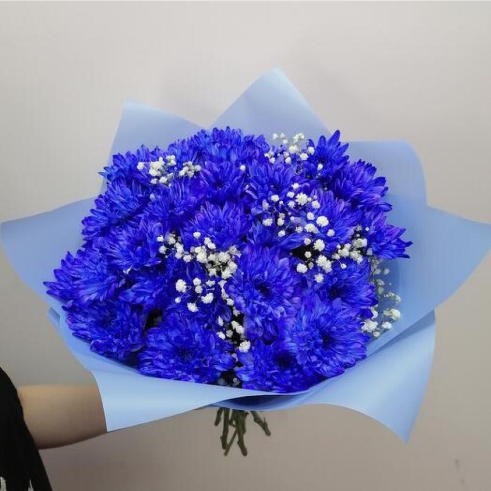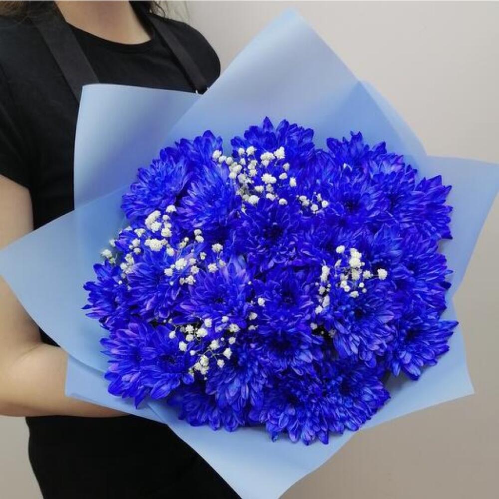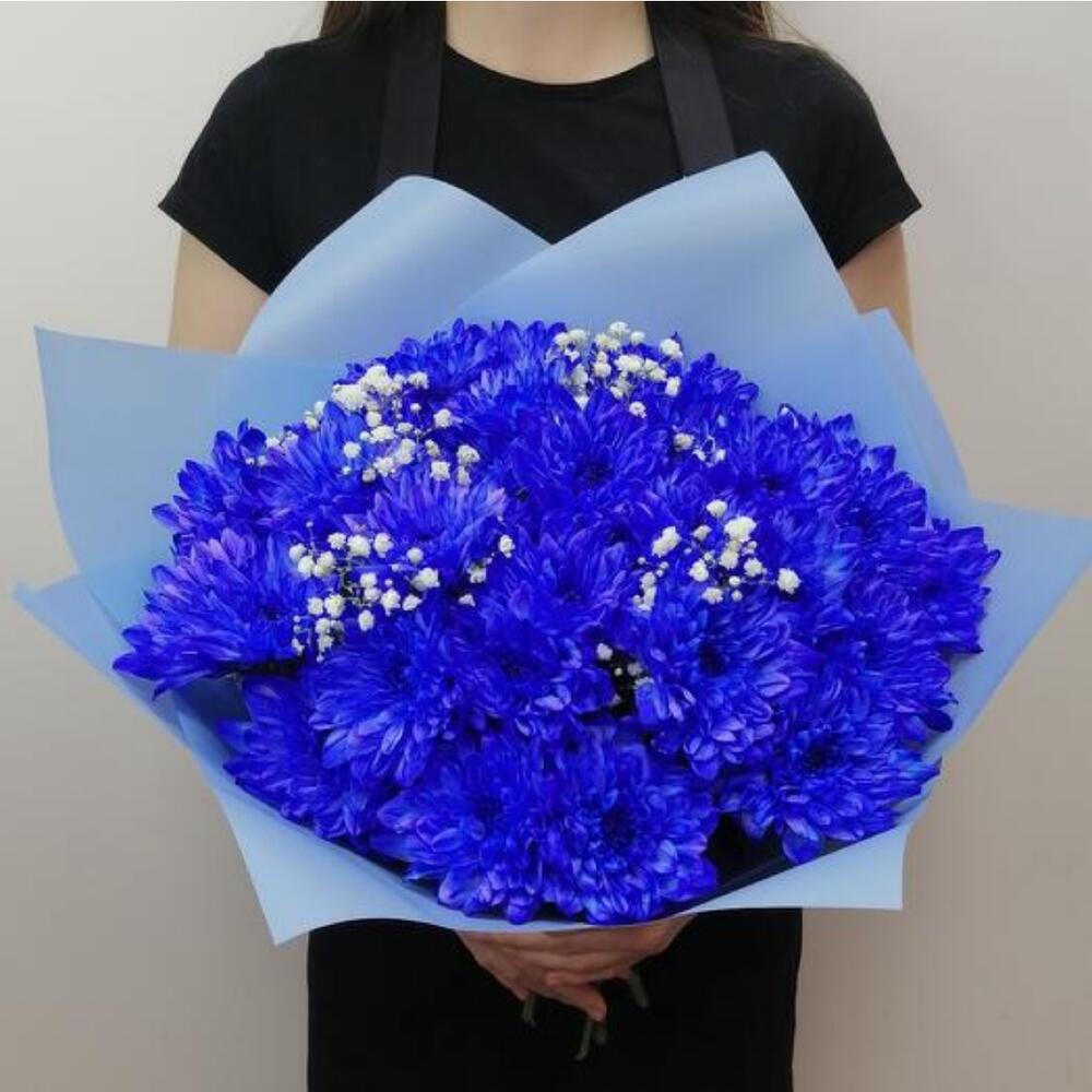9 букетов из синих окрашенных хризантем