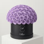 Шляпная коробка с 99 роскошными фиолетовыми розами Arry