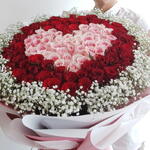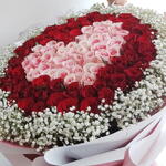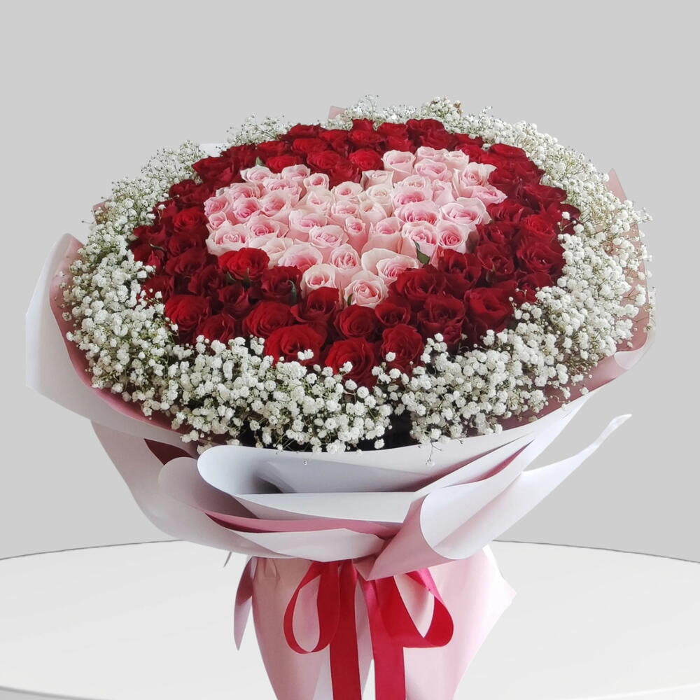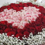 Red rose - 50 шт. Gypsophila - 10 шт. мягкая розовая роза - 51 шт.
