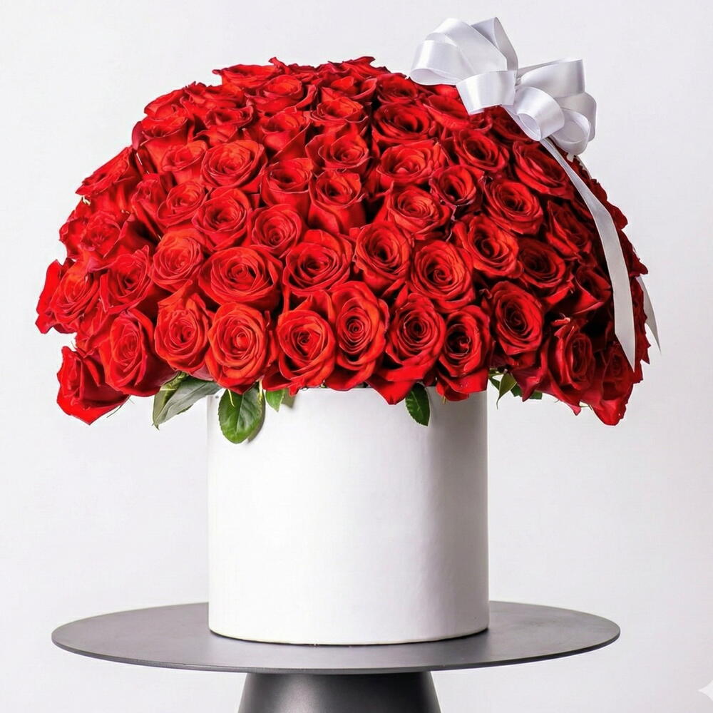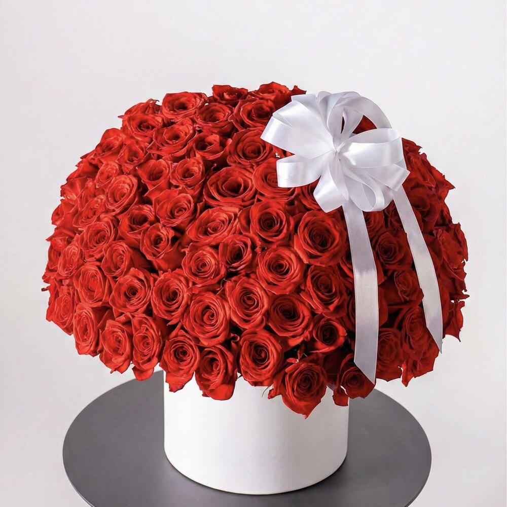Отпразднуйте любовь с изяществом с нашим куполом из 99 красных роз в роскошной коробке — потрясающая цветочная композиция ко Дню святого Валентина в Дубае. Этот впечатляющий дизайн включает 99 премиальных свежих красных роз, расположенных в идеальной куполообразной форме внутри роскошной коробки, создавая насыщенный, пышный и утончённый вид. Символизируя вечную любовь и преданность, эта композиция идеально подходит для Дня святого Валентина, годовщин и незабываемых романтических сюрпризов. Искусно выполнена вручную из высококачественных свежих роз, чтобы обеспечить долговечную красоту и роскошную презентацию. Доступна доставка цветов в тот же день в Дубае и по всей ОАЭ.