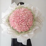Pink rose - 99 шт. Gypsophila - 10 шт.