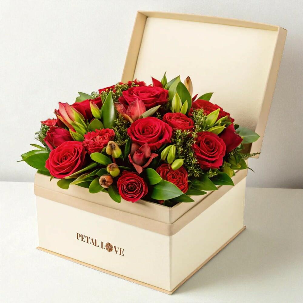 Романтичная красная цветочная коробка