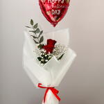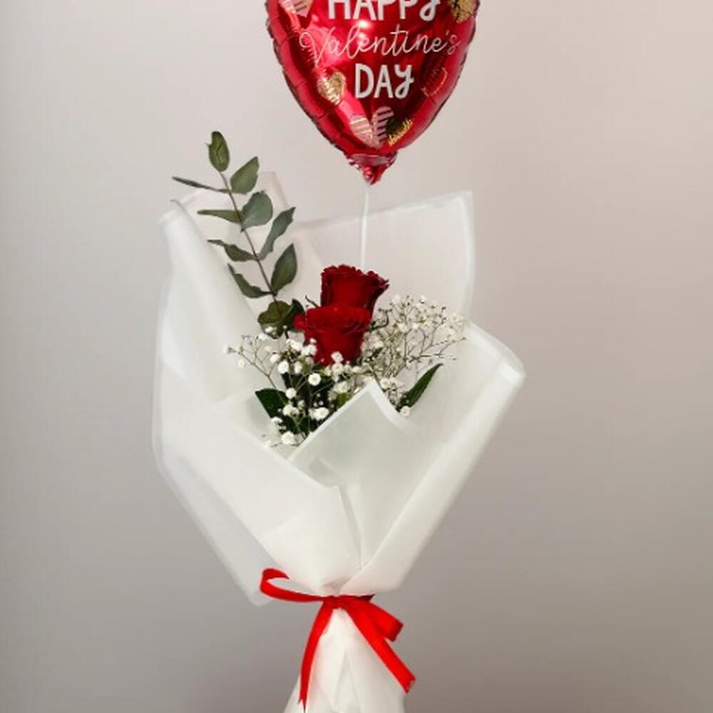 Red rose - 2 шт. Eucalyptus - 1 шт. baby breath - 2 шт. воздушный шар С Днём святого Валентина - 1 шт.