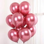 Набор из букета из разных цветов и 11 хромовых шаров цвета розового золота, наполненных гелием .