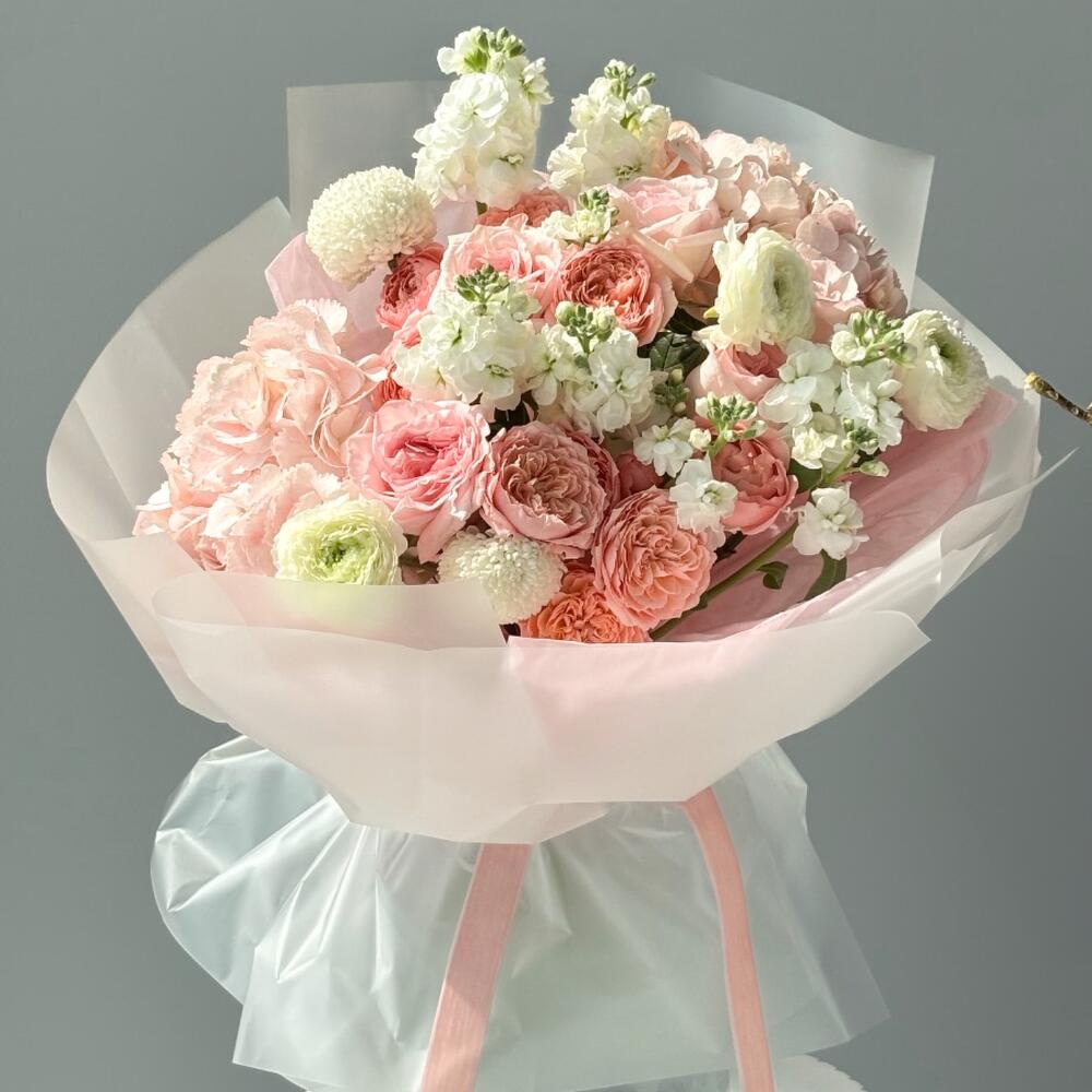 Алина – нежное воплощение нежности и грации. Этот букет, состоящий из нежно-розовых роз, ранункулюсов цвета слоновой кости, белых левкоев и пастельных гортензий, передает нежную красоту весенних русских садов. Оформленный в нежных тонах, этот поэтичный букет создан для трогательных событий – от любовных историй до изящных жестов.