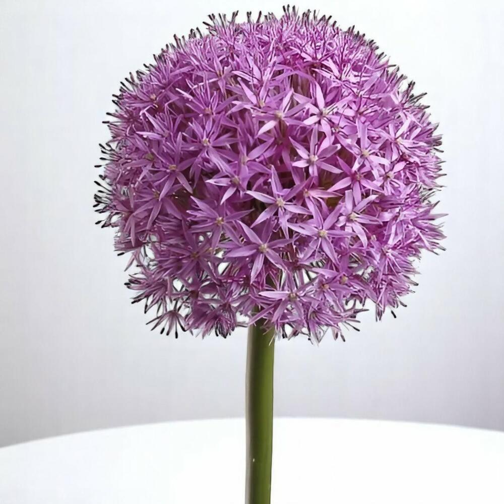Поднимите свой цветочный стиль на новый уровень с помощью лука-аллиума светло-фиолетового цвета (Allium Light Purple Per Stem) – эффектного декоративного цветка, известного своими идеально круглыми звездообразными соцветиями. Этот величественный цветок на одном стебле выделяется своей архитектурной красотой и нежным лавандовым оттенком, что делает его идеальным для минималистичных композиций или в качестве смелого акцента в смешанных букетах. Цена 16 дирхамов за стебель – это доступное и стильное дополнение к вашей цветочной коллекции, идеально подходящее для современных интерьеров, подарков или свадебного декора. Инструкции по уходу: Поставьте в чистую вазу со свежей водой и подрежьте стебель по диагонали перед тем, как поставить. Меняйте воду каждые 2–3 дня и храните в прохладном месте, вдали от прямых солнечных лучей и тепла, чтобы продлить жизнь цветения.
